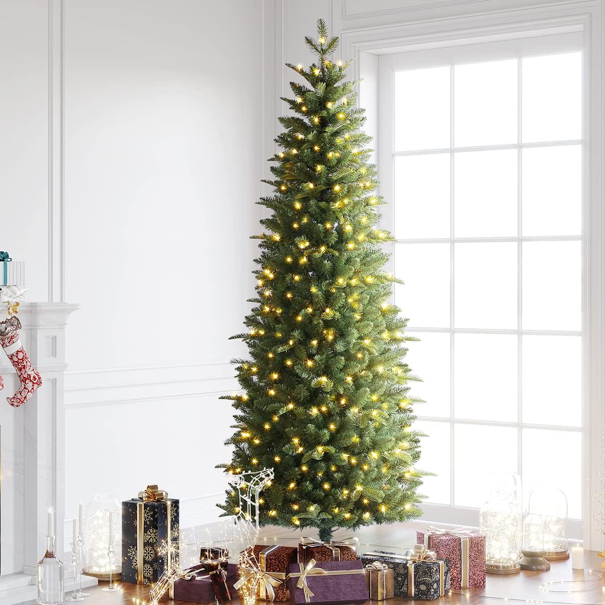 Buy Oasiscraft 7 5 Foot Slim Christmas Tree Artificial Christmas Tree Prelit 7 5ft Pencil Tree Christmas With Warm Lights For Home Office Party Shop Online In Kuwait B09g68g6w1